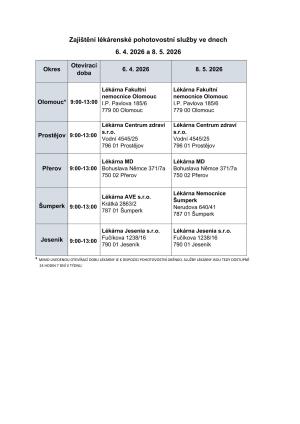 Zajištění lékárenské pohotovostní služby ve dnech