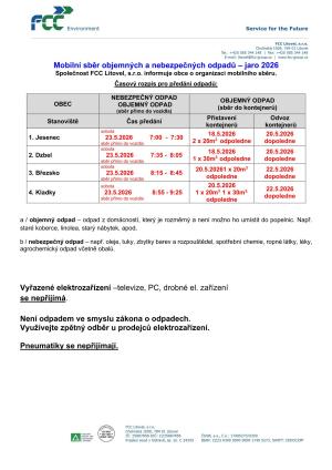 Mobilní sběr velkoobjemového a nebezpečného odpadu - jaro 2026