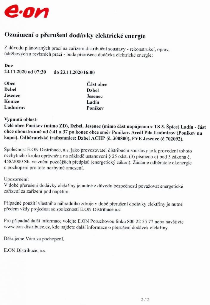 E.ON - Oznámení o přerušení dodávky el. energie