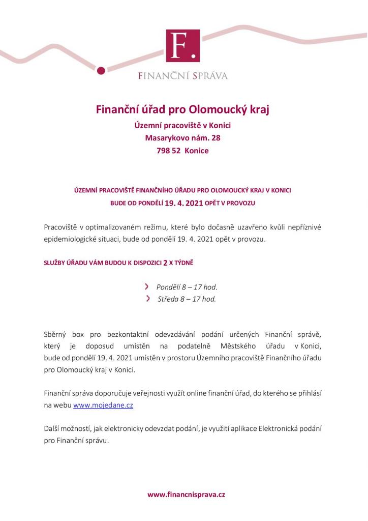 Finanční úřad pro Olomoucký kraj oznamuje...