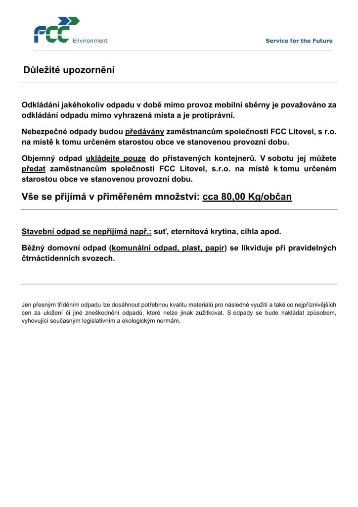 Mobilní sběr velkoobjemového a nebezpečného odpadu - podzim 2025