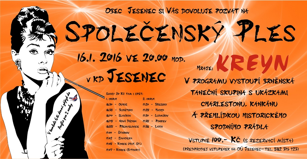 Obec Jesenec pořádá 16. ledna 2016 společenský ples.